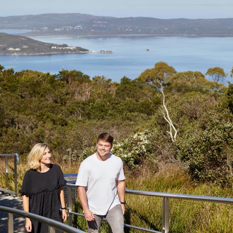 Through the streets of this vibrant and flourishing City, see art, indigenous story, settlement and connection with world events. View Princess Royal Harbour, the channel to King George Sound and the peninsulas beyond. See how the city center nestles into the valley and the expanse of surrounding natural bushland.
